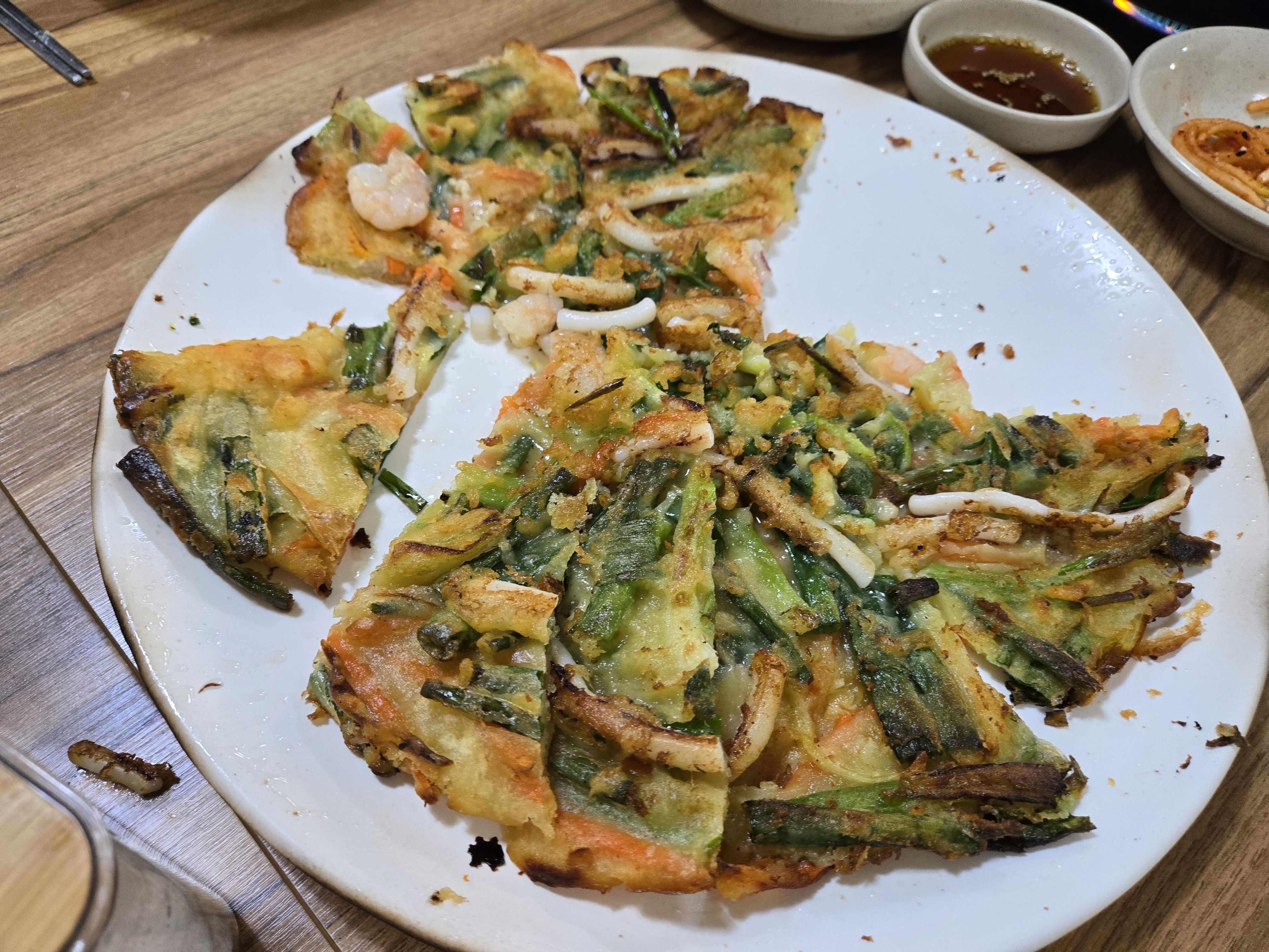 보통 해물파전은 먹다 보면 느끼할 수 있는데, 이곳 파전은 전혀 느끼하지 않고 담백했습니다. 게다가 간장 소스가 너무 짜지 않고 깔끔해서 파전과 환상적인 조화를 이뤘어요.