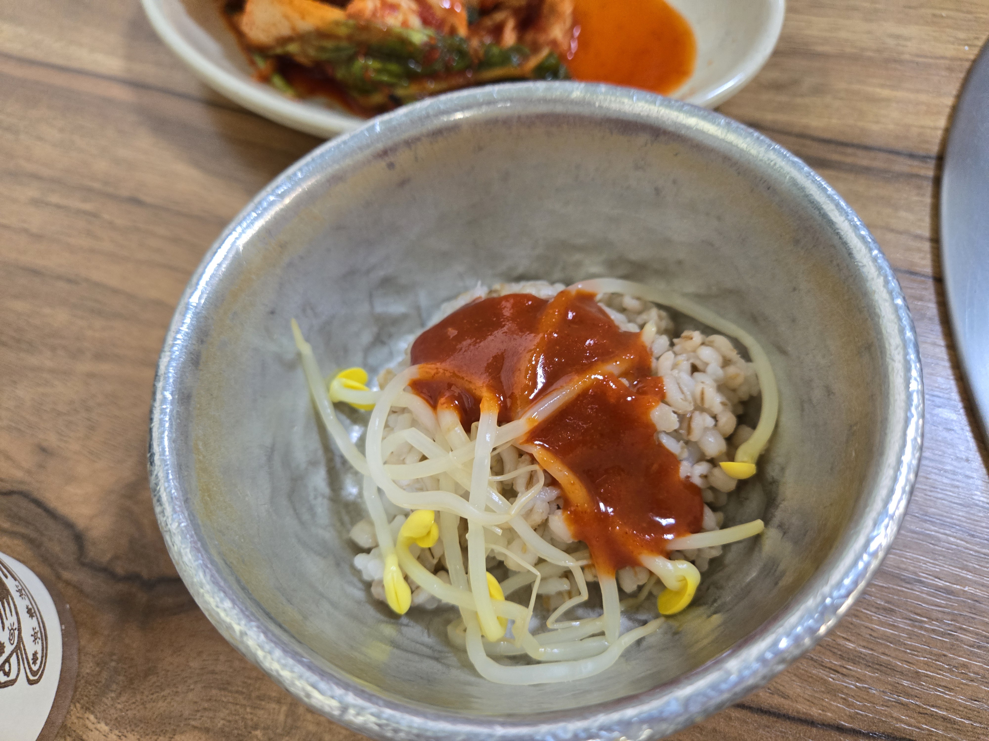 보리밥은 참기름과 고추장을 살짝 넣어 쓱쓱 비벼 먹었는데, 고소함과 상큼함이 어우러져 이 자체만으로도 훌륭한 별미였습니다.