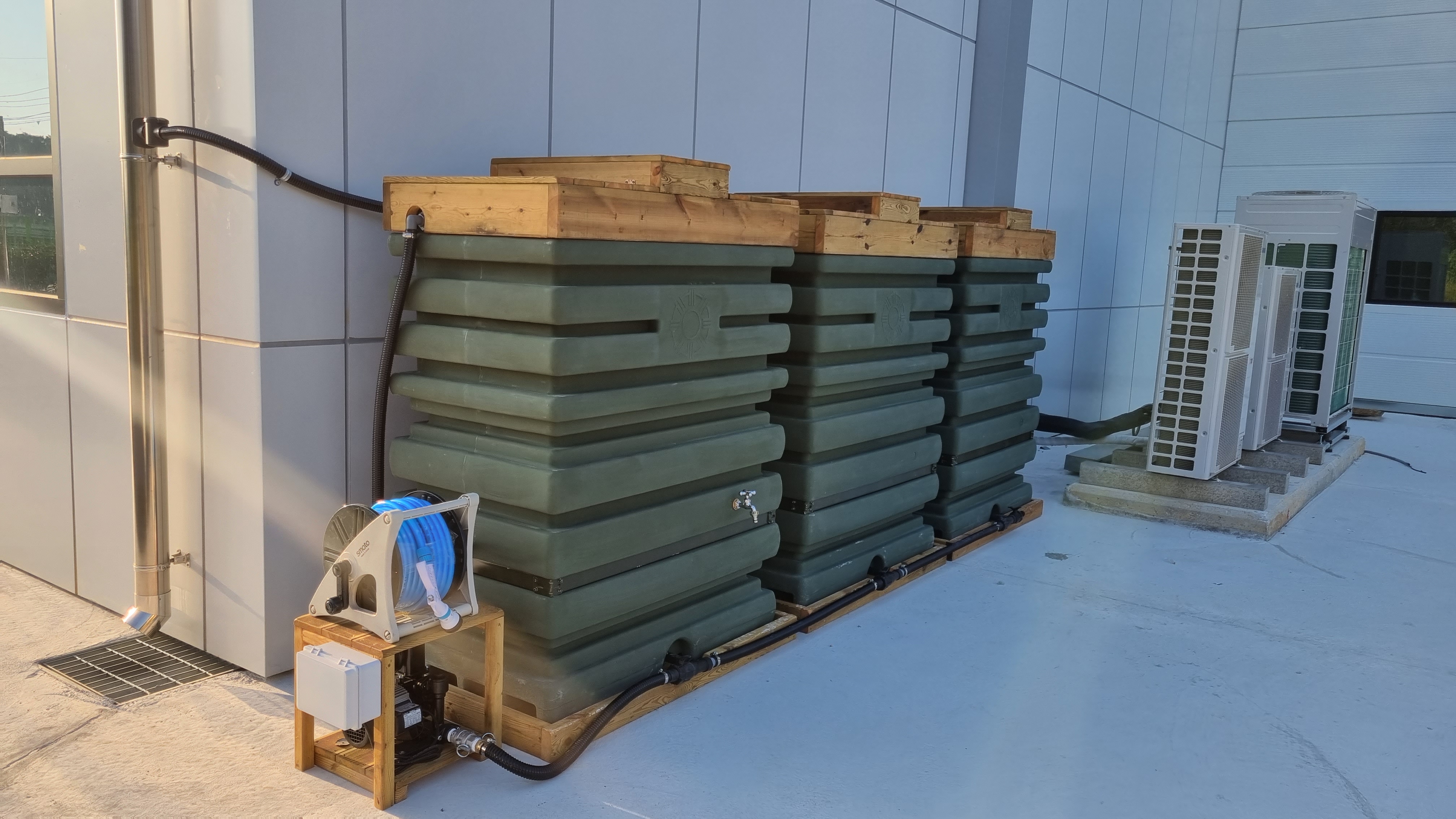 이렇게 해서 2개의 빗물이용시설(빗물저금통)도 문제없이 설치를 완료했습니다!