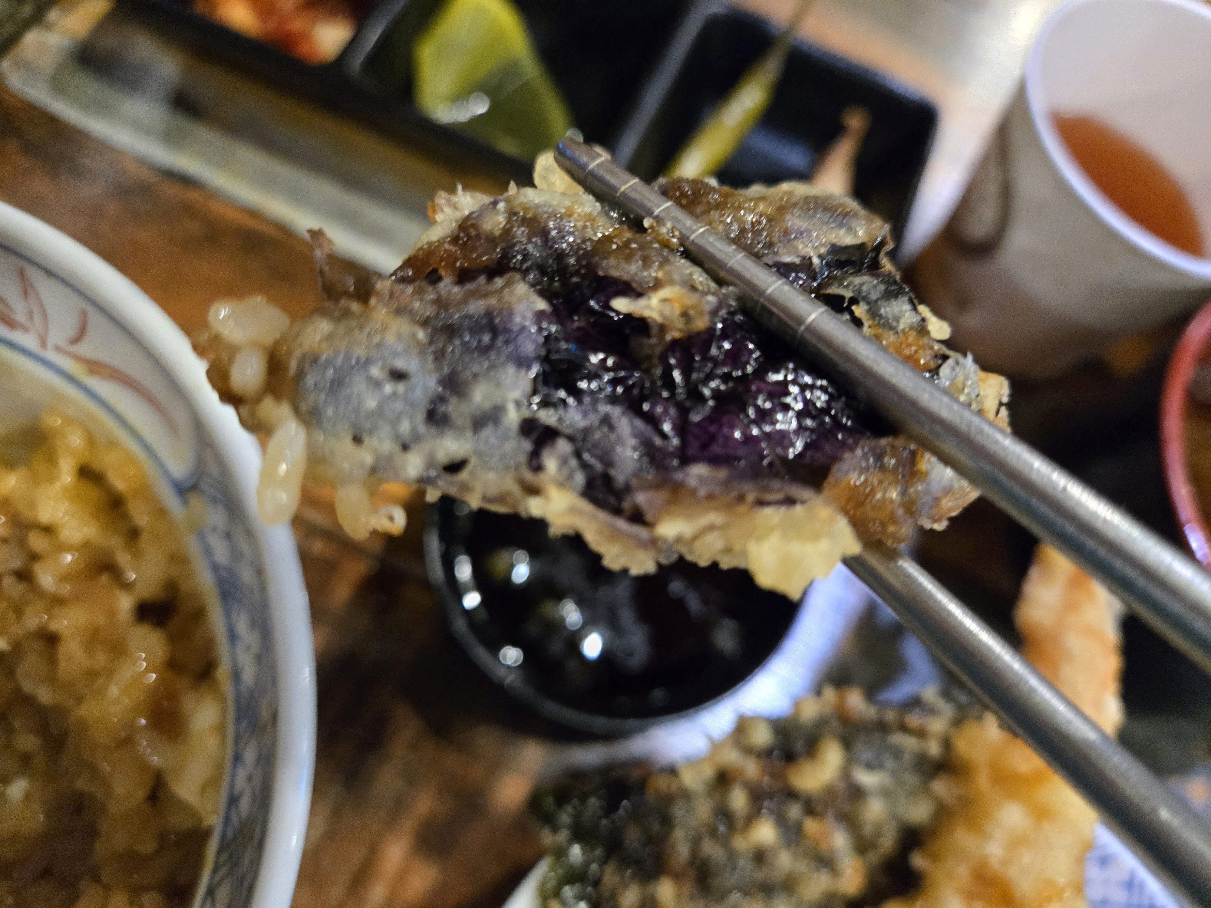 튀김은 정말 바삭했고, 재료 본연의 맛이 잘 살아 있었다. 특히 개인적으로 고추튀김이 제일 맛있었다. 적당한 매운맛이 느끼함을 잡아주면서도, 고소한 튀김의 맛을 더해주었다. 새우튀김도 탱글한 식감이 살아있어서 만족스러웠다.