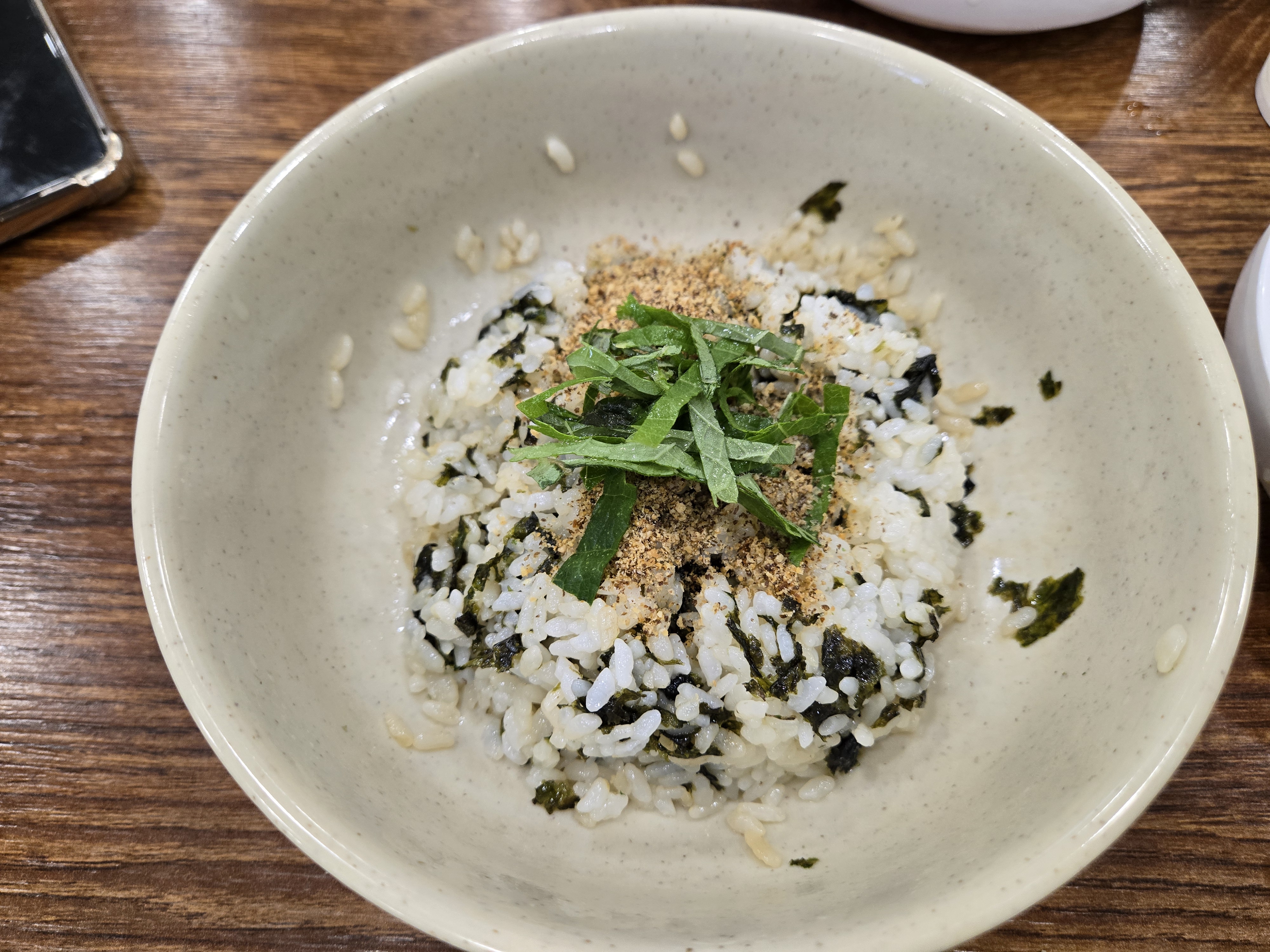 반면 들깨간장밥은 어린이 메뉴로 소개되고 있지만, 어른 입맛에도 딱 맞는 감칠맛이 특징입니다. 밥 위에 들깨가루가 아낌없이 뿌려져 있고, 고소한 간장과 잘 어우러지며 구수한 풍미가 일품이었습니다. 건강한 식사를 원하시는 분들에겐 특히 추천드리고 싶은 메뉴예요.