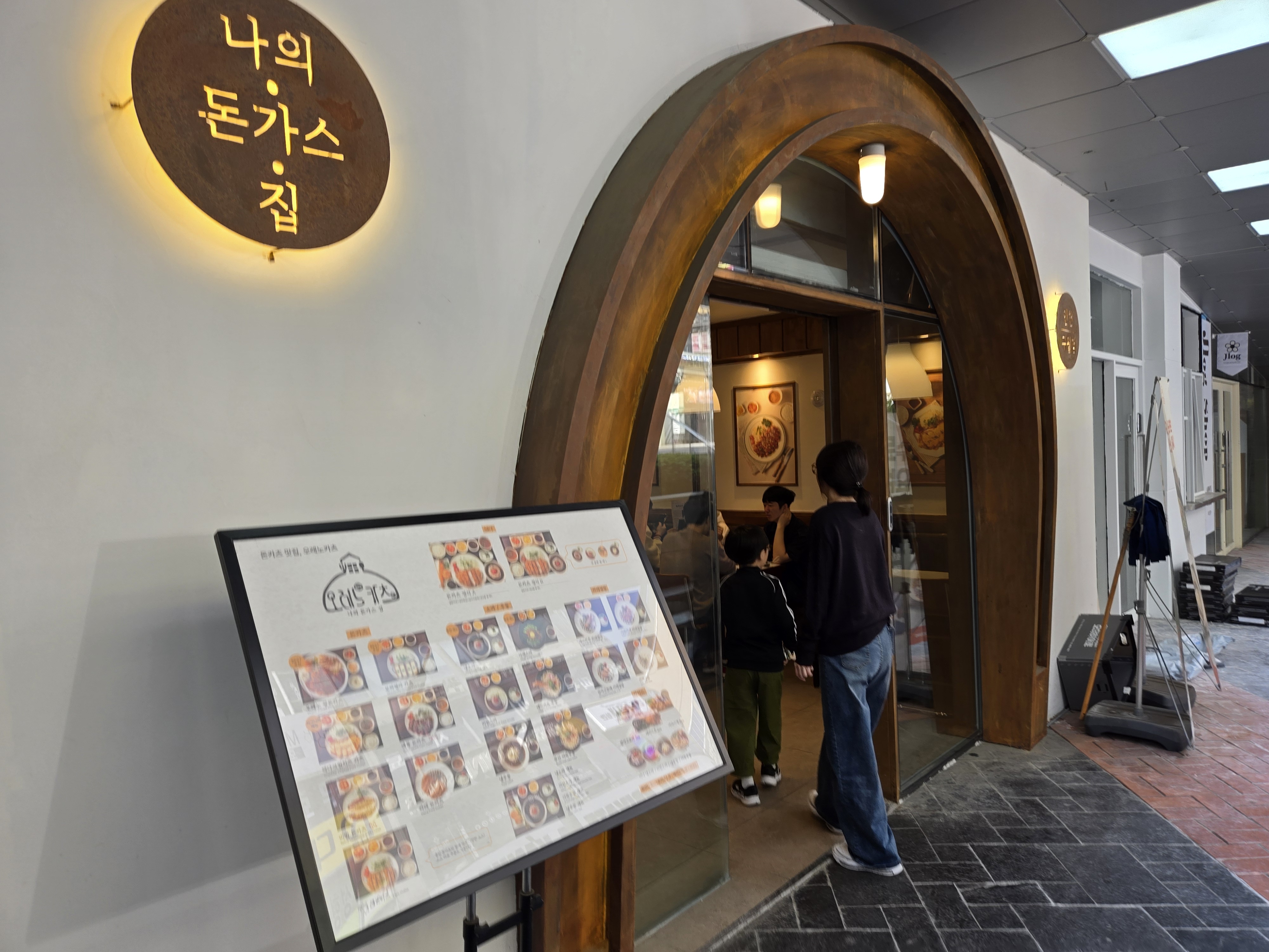 구월동 맛집 중에서도 오레노카츠는 외관부터 기대를 품게 만드는 곳이었어요. 따뜻한 조명과 깔끔한 원목 인테리어가 어우러져 고급스러우면서도 편안한 분위기를 자아냈습니다. 입구 앞 메뉴판에는 오늘의 추천 메뉴가 친절히 소개되어 있었고, 매장 안에서는 고소한 튀김 냄새가 은은하게 퍼져 식욕을 자극했어요.