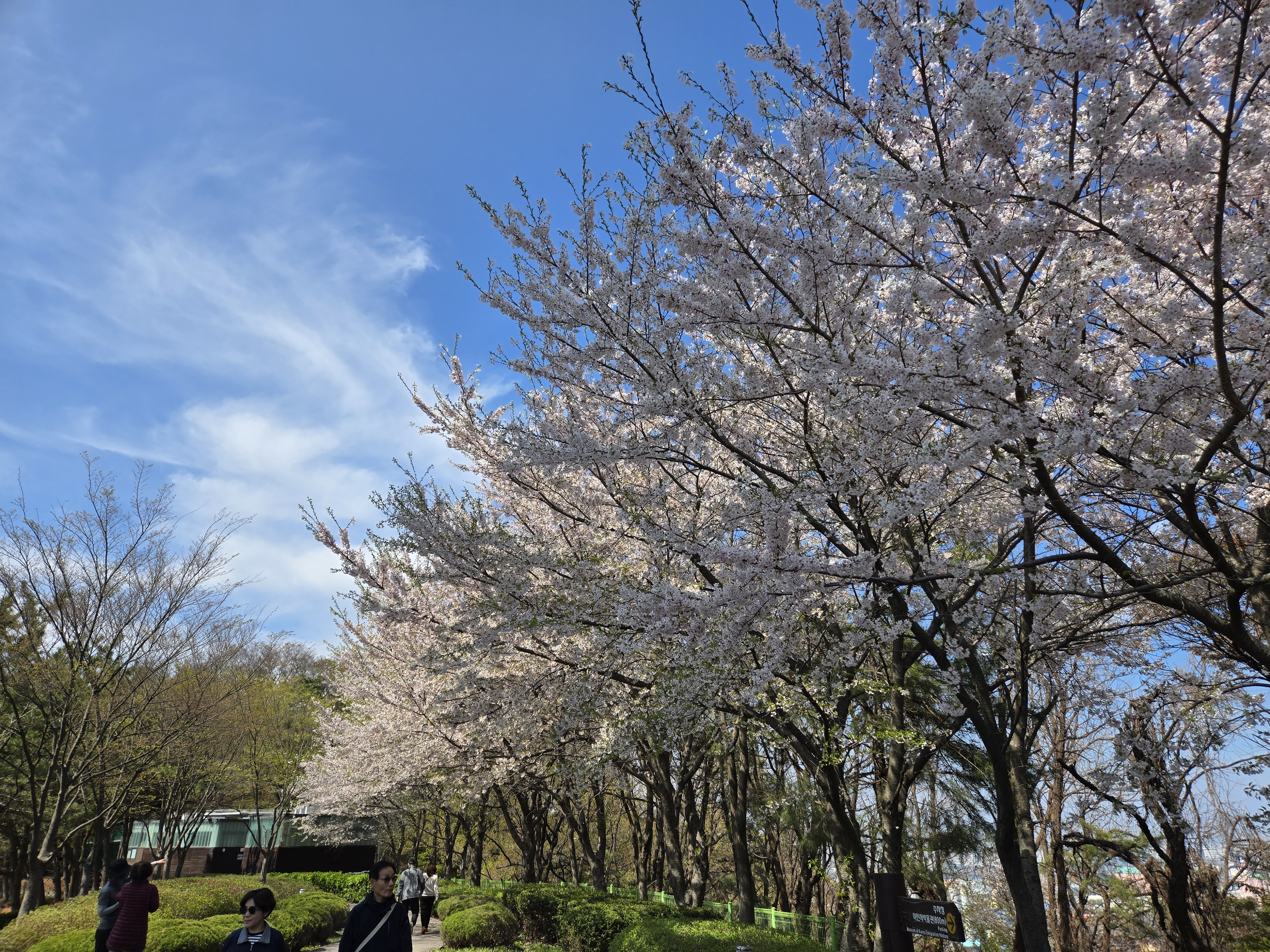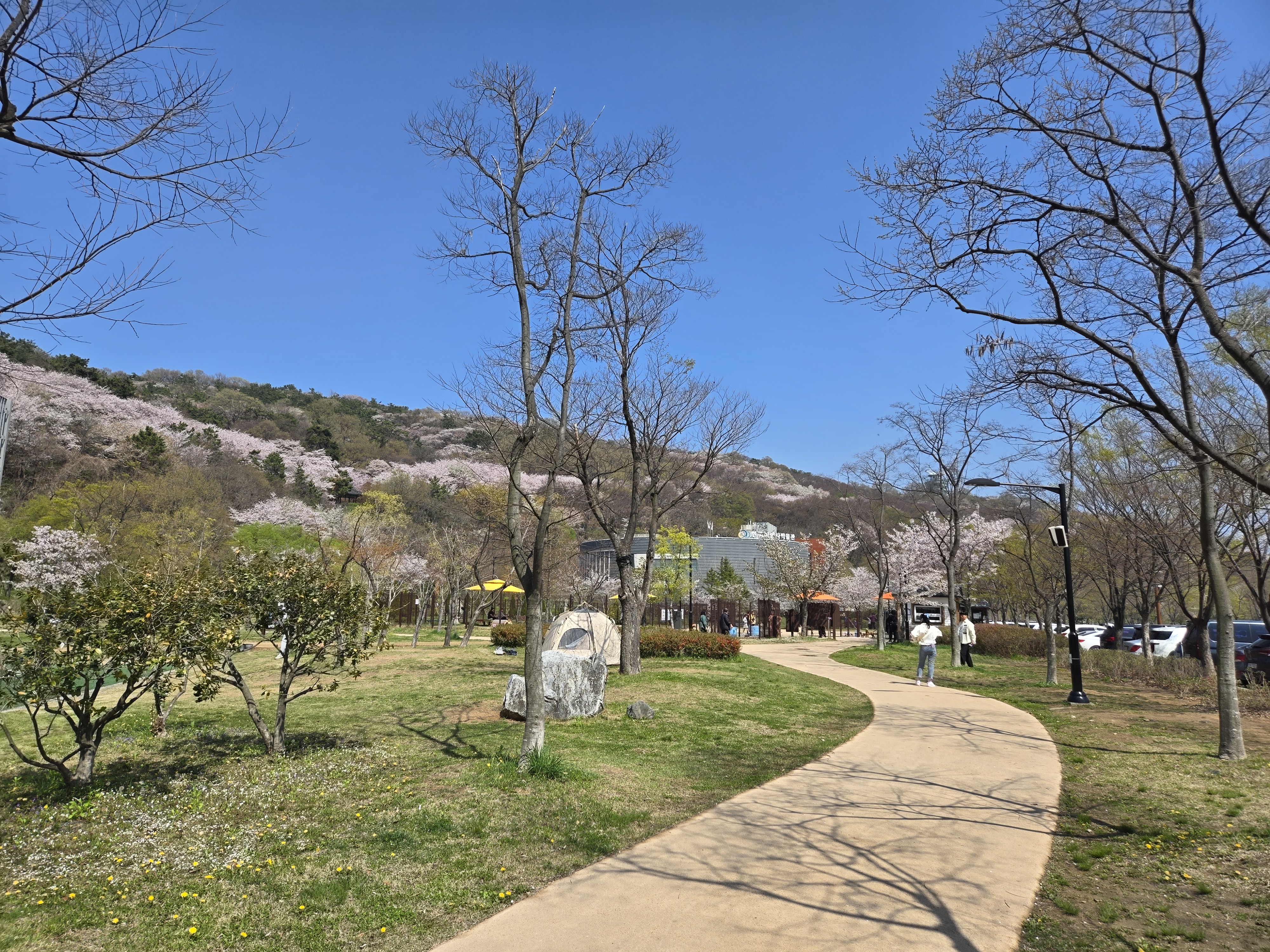 차에서 내리자마자 벚꽃 향이 반겨주었고, 파란 하늘 아래 흐드러지게 핀 벚꽃 풍경이 마치 봄날의 그림 속에 들어온 듯한 기분을 선사했다.
