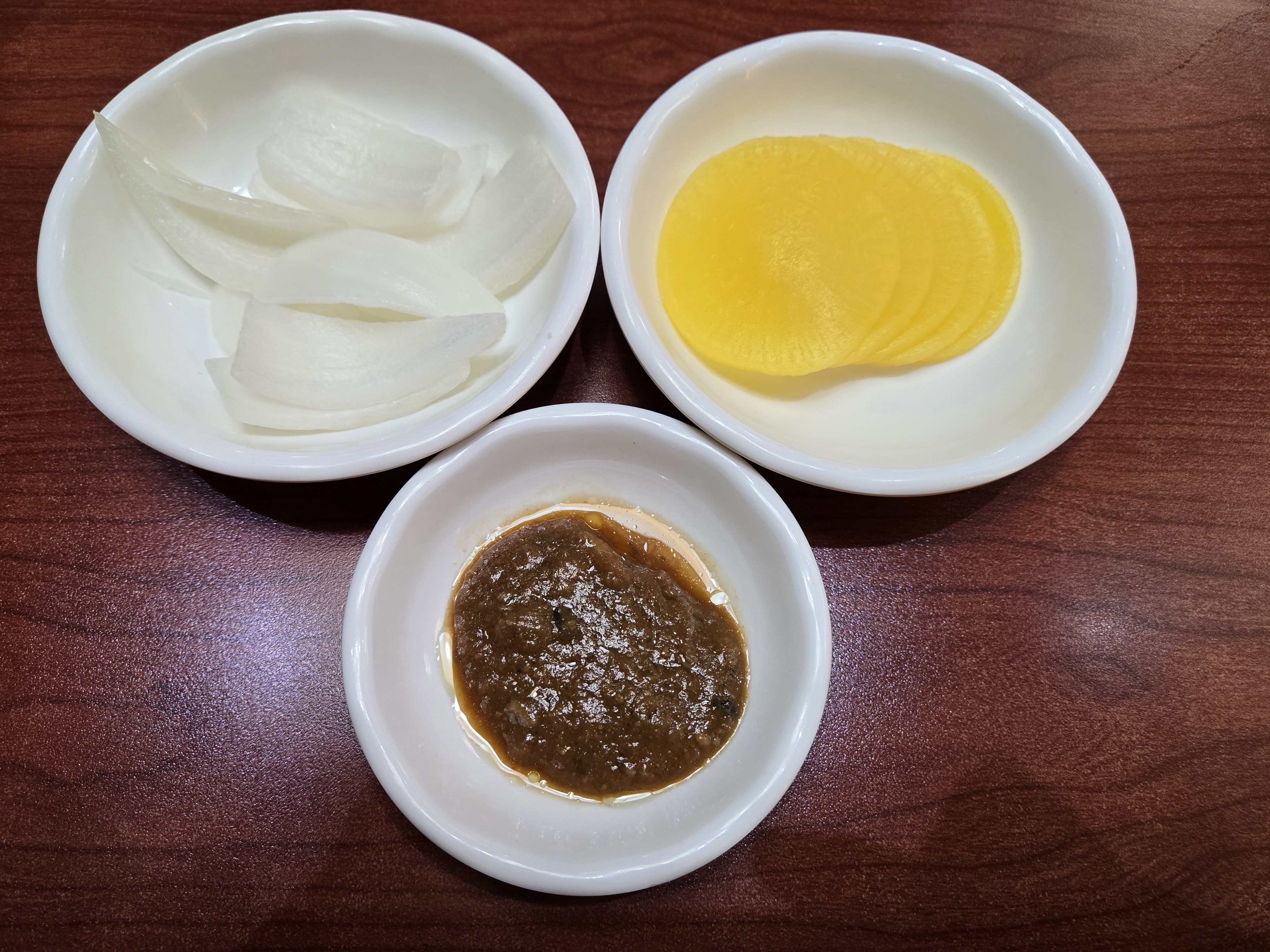 자리에 앉자마자 제공되는 기본찬부터 인상적이었어요. 기본찬은 양파, 단무지, 춘장으로 구성되어 있었는데, 양파는 신선하고 아삭아삭했어요. 단무지도 지나치게 시지 않고, 깔끔한 단맛과 식감이 좋았고요.