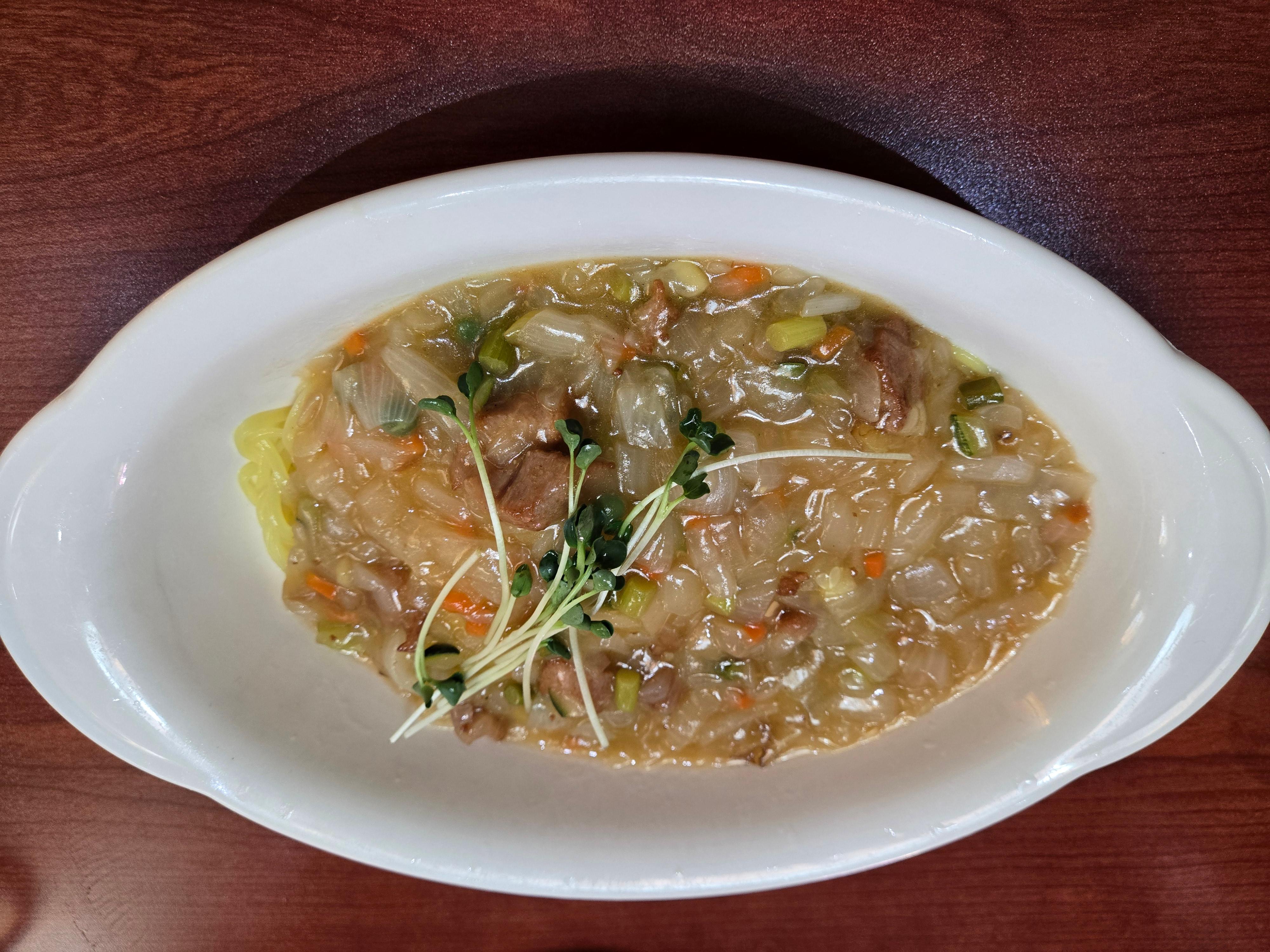 이어서 등장한 우육면! 진한 국물 색깔부터 기대를 저버리지 않았어요. 국물은 깊고 진하면서도 깔끔했어요. 첫 숟갈을 뜨자마자 고소하고 진한 소고기 육향이 입안을 감돌았고, 끝맛에 살짝 맴도는 매콤함이 입맛을 확 살려줬어요.