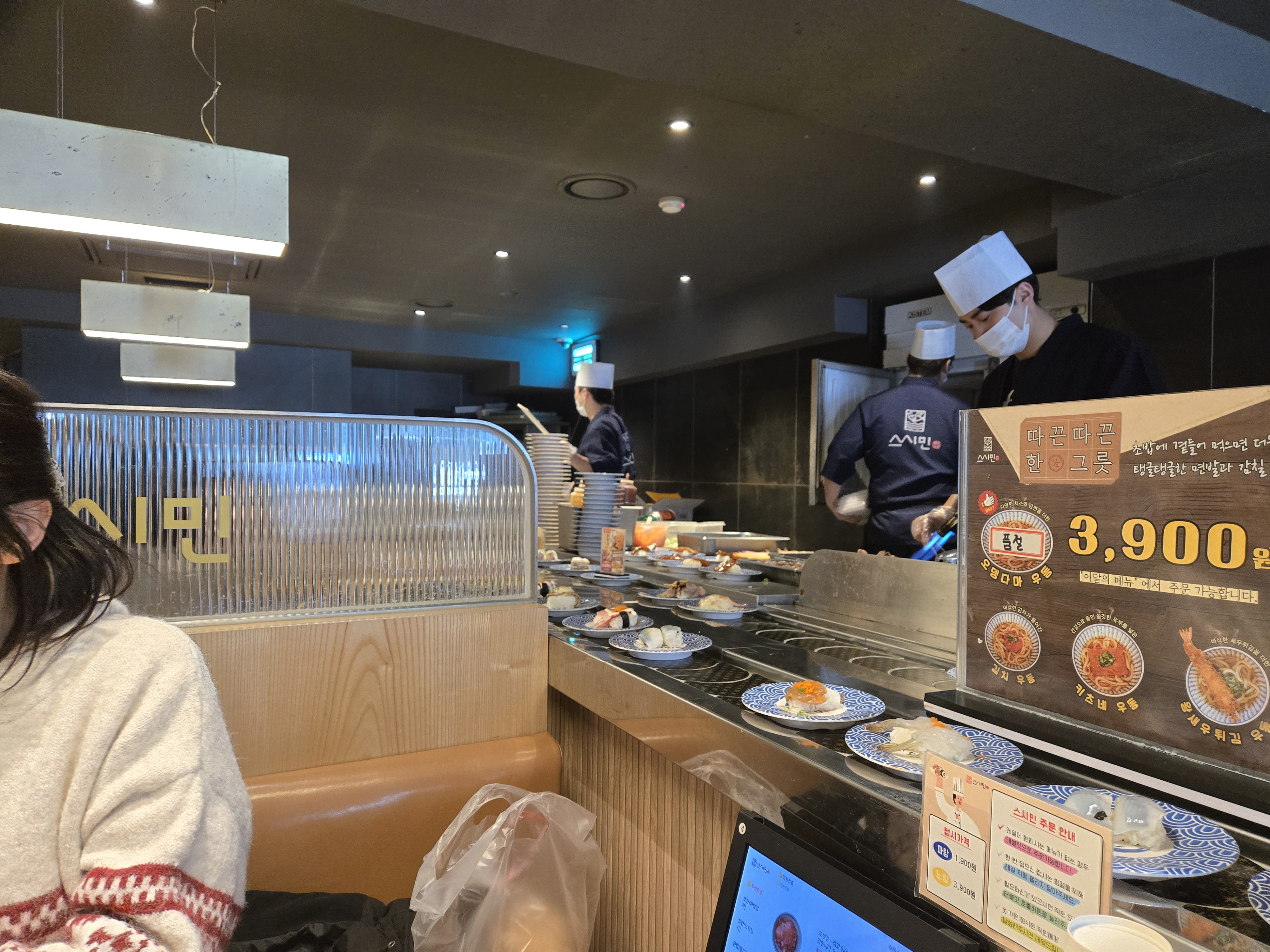 인천 스시민은 단순한 회전초밥집이 아니었습니다. 합리적인 가격에 신선한 초밥을 즐길 수 있었고, 무엇보다도 매장 내부가 정말 깔끔하고 쾌적했어요. 입구에 들어서자마자 느껴지는 세련된 외관과 생선 비린내가 거의 느껴지지 않는 상쾌한 공기! 이미 이때부터 좋은 예감을 가질 수밖에 없었답니다.