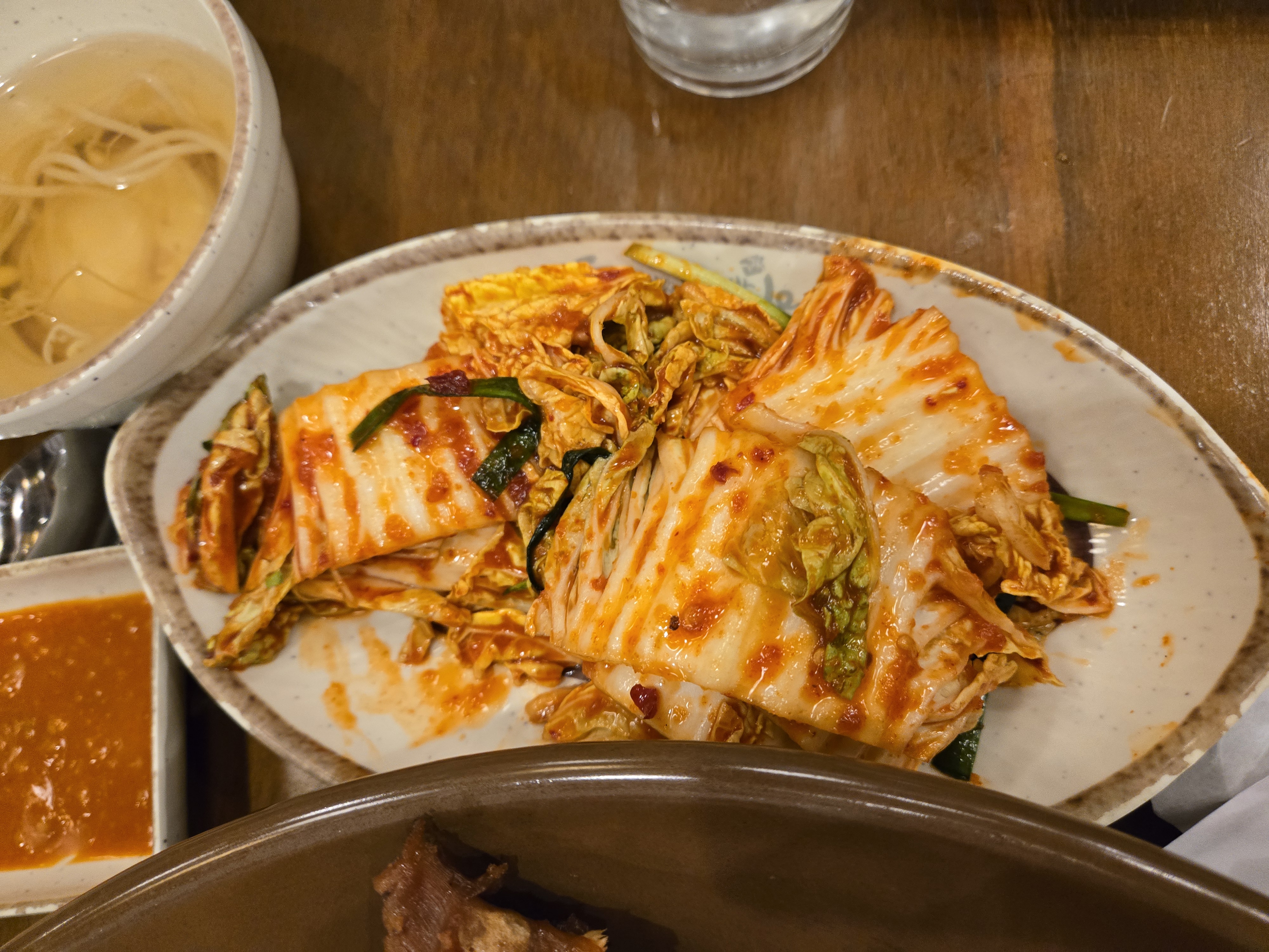 기본으로 제공되는 찬들도 정말 훌륭했어요. 깔끔하게 익은 배추김치, 적당히 매콤한 파김치, 그리고 새콤달콤한 무생채까지 하나하나 맛있게 준비되어 있었어요.