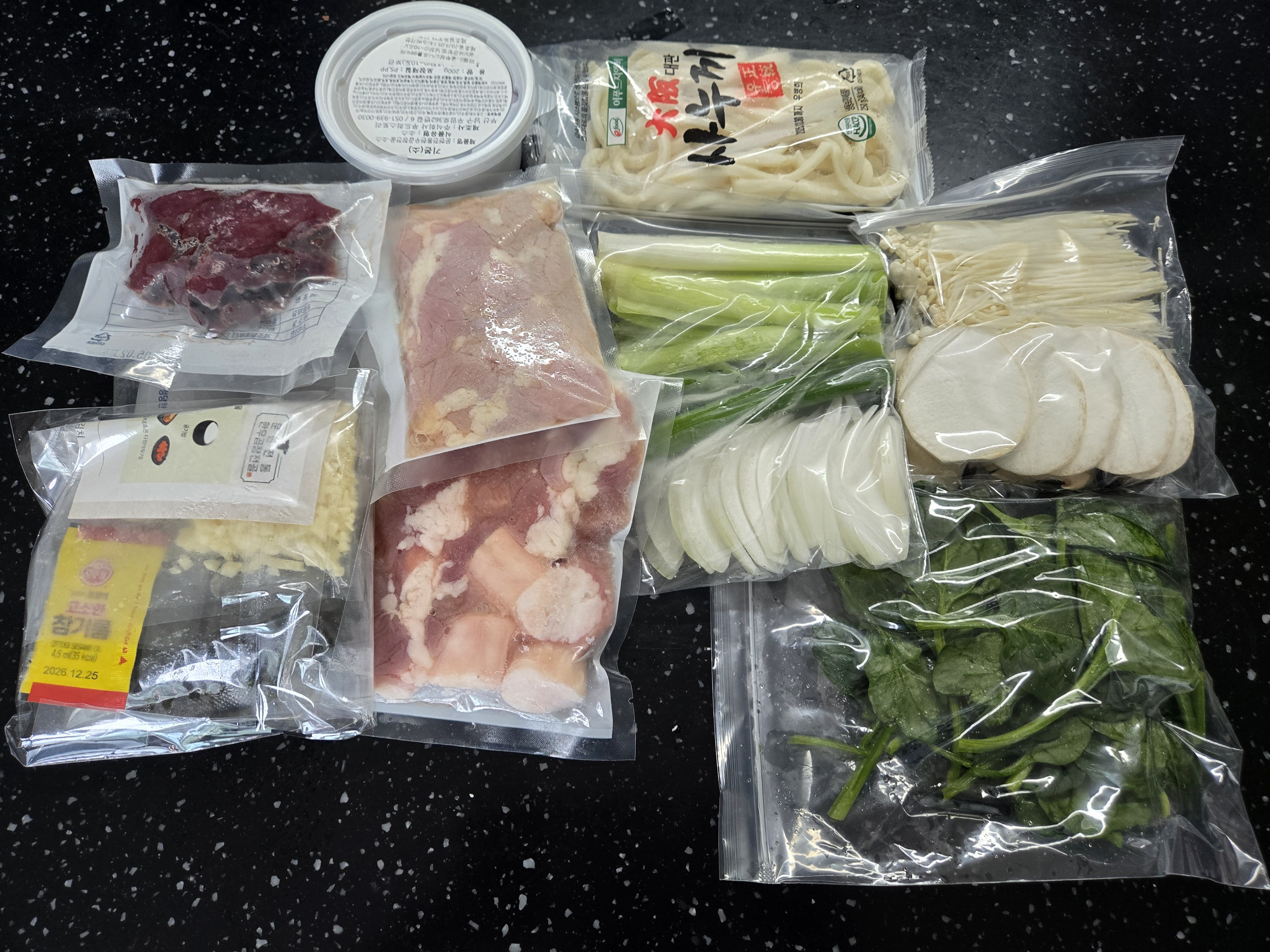 구성품을 살펴보면, 국내산 한우 소창과 대창, 염통이 넉넉하게 들어 있었고, 당일 도축 후 급냉한 고기답게 질감과 색감 모두 살아 있었어요. 추가로 제공된 소창은 국산 35%, 호주산 65% 혼합이었지만 품질에는 전혀 손색이 없었습니다. 야채는 대파, 시금치, 팽이버섯 등으로 구성되어 있었고, 무엇보다 깊고 진한 한우 사골육수 베이스의 숙성 양념장이 정말 인상적이었어요. 자극적이지 않으면서도 깊은 맛이 나서 남녀노소 누구나 좋아할 만한 맛이었습니다.