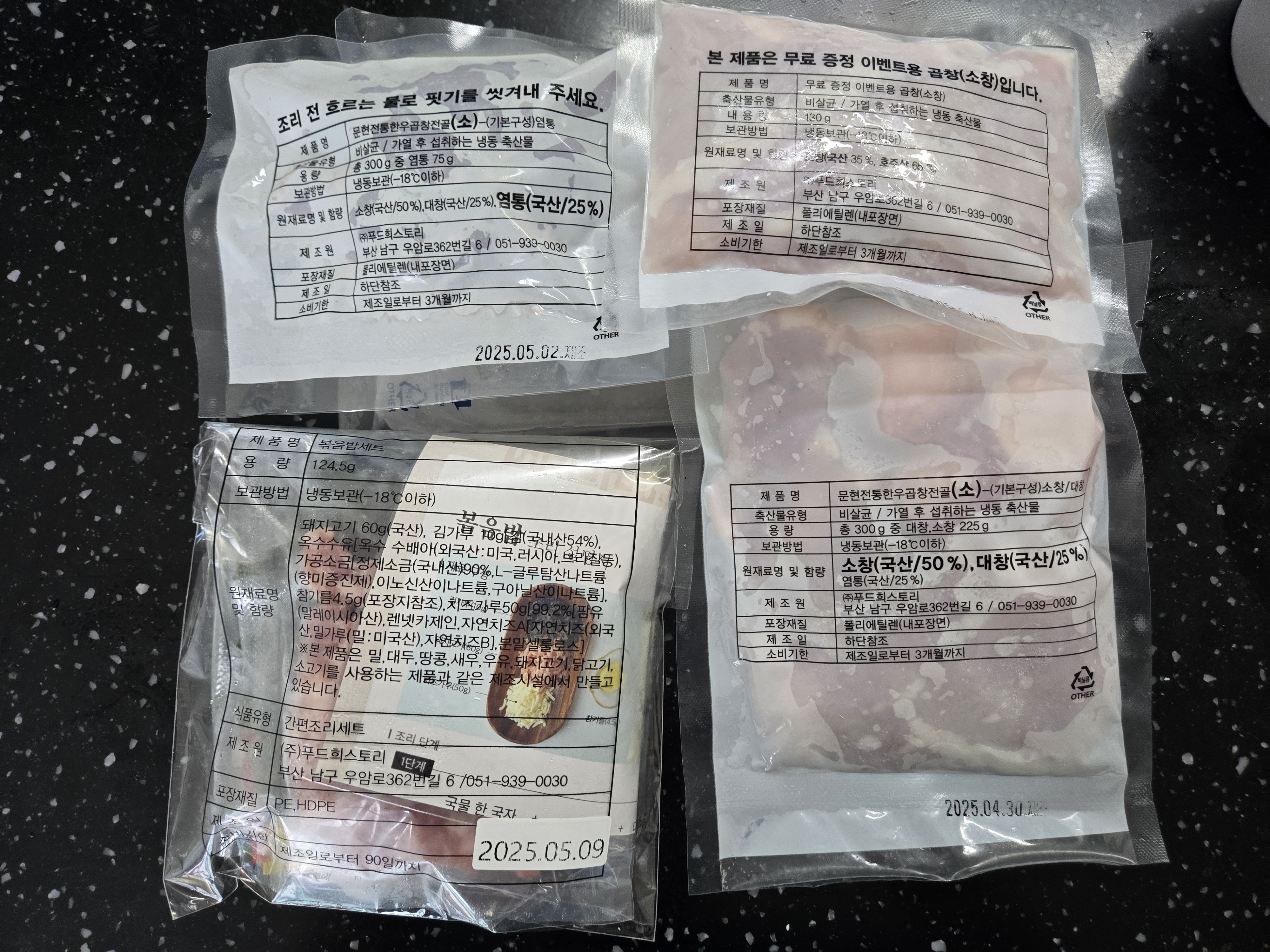 | 곱창팩 | 소창, 대창, 염통 (당일 도축 후 급냉) |