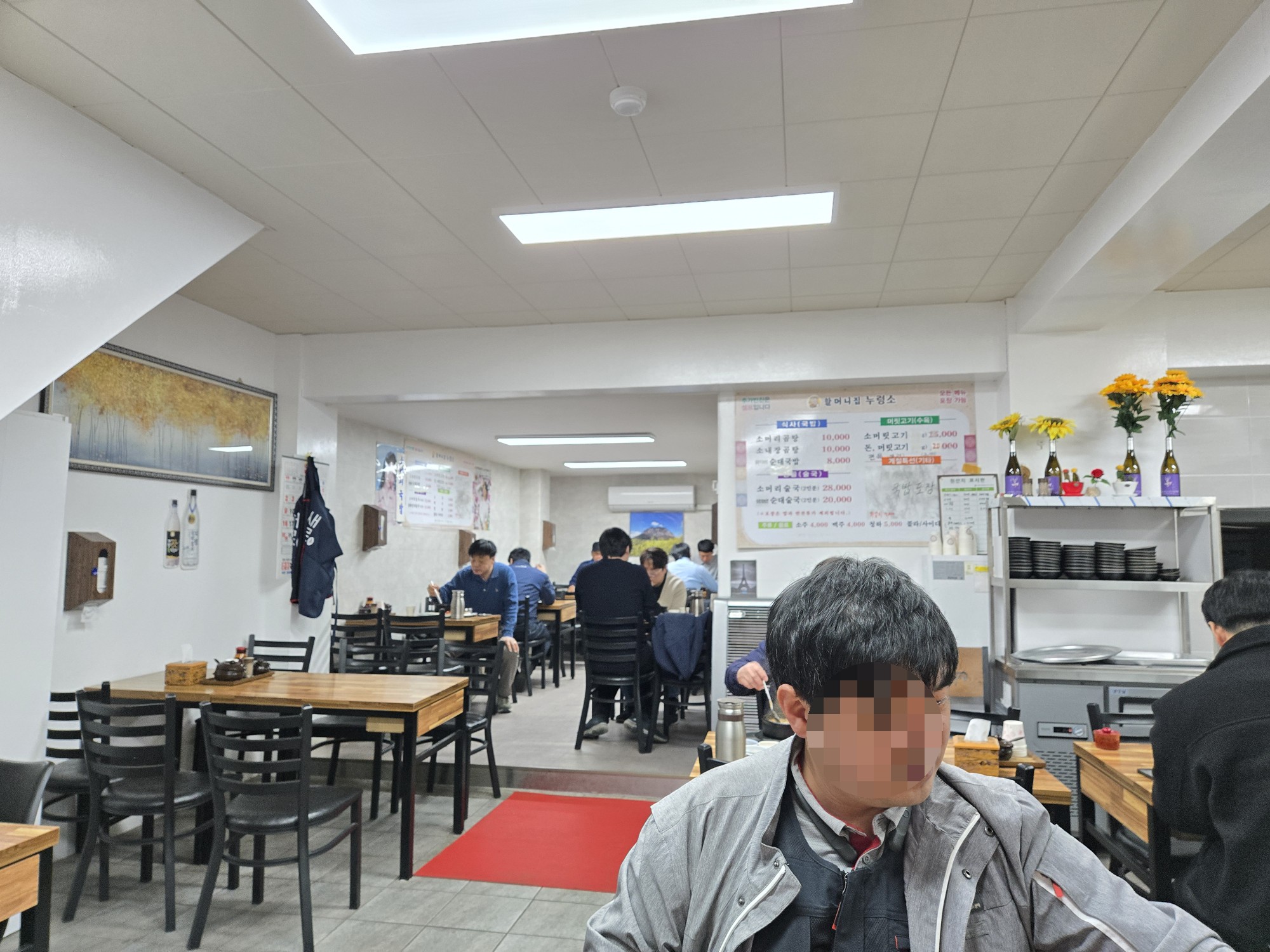 이날은 지인이 먼저 가서 순대국밥을 주문해 두었고, 저는 약 10분 정도 늦게 도착했습니다. 덕분에 도착하자마자 바로 식사를 시작할 수 있었지만, 아쉽게도 뚝배기 국물은 약간 식어 있었습니다. 그래도 순대와 머리고기가 푸짐하게 들어 있어 식어도 맛은 여전했습니다.