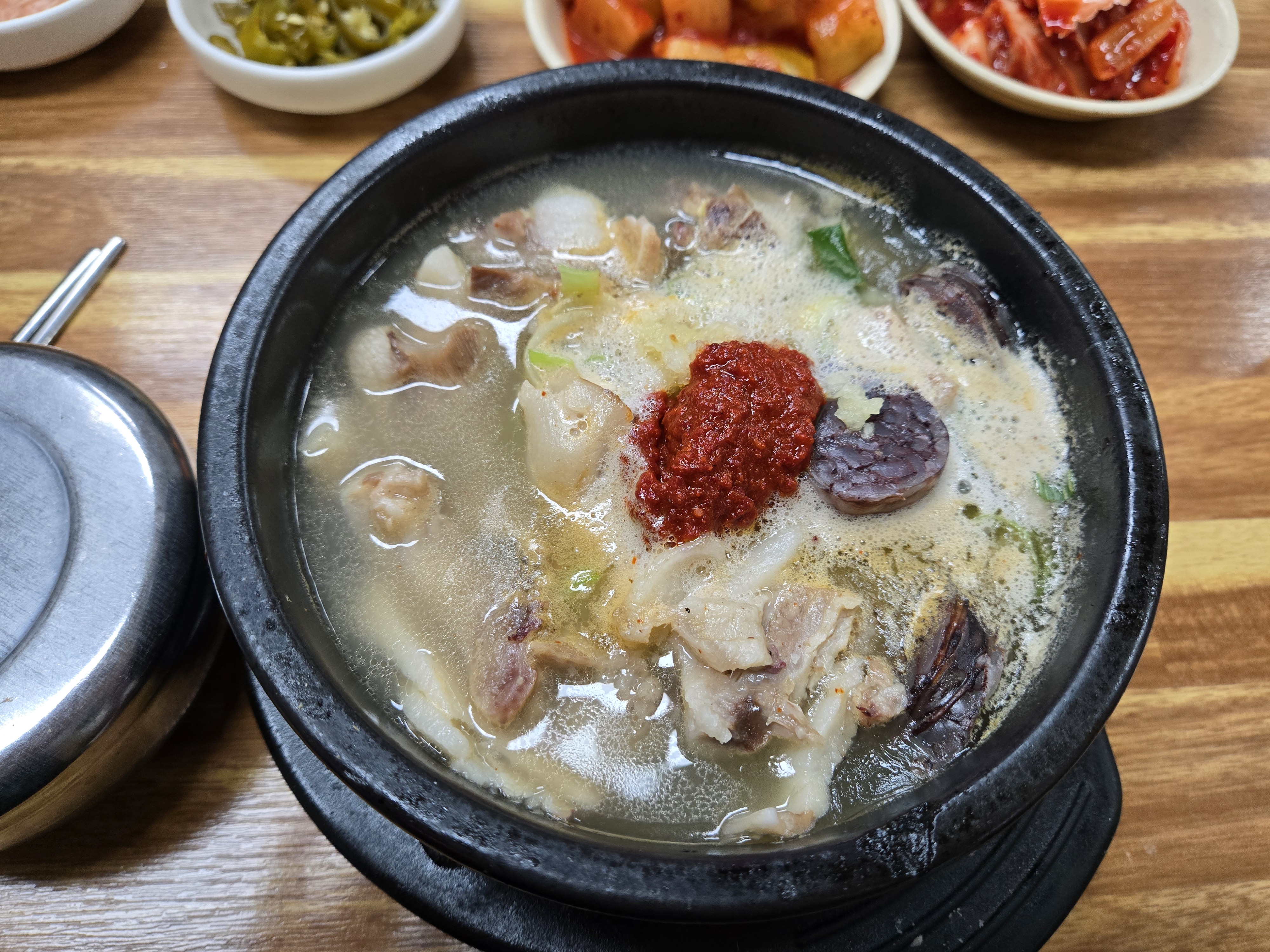 순대는 잡내 없이 깔끔하고 쫄깃했으며, 머리고기는 고소하고 부드러웠습니다. 뚝배기가 약간 식어 있었지만, 다진 양념과 국물의 맛이 여전히 살아있어 만족스러운 식사를 할 수 있었습니다. 뜨거운 국물에 민감한 분들은 직접 주문해서 바로 먹는 것을 추천드립니다.
