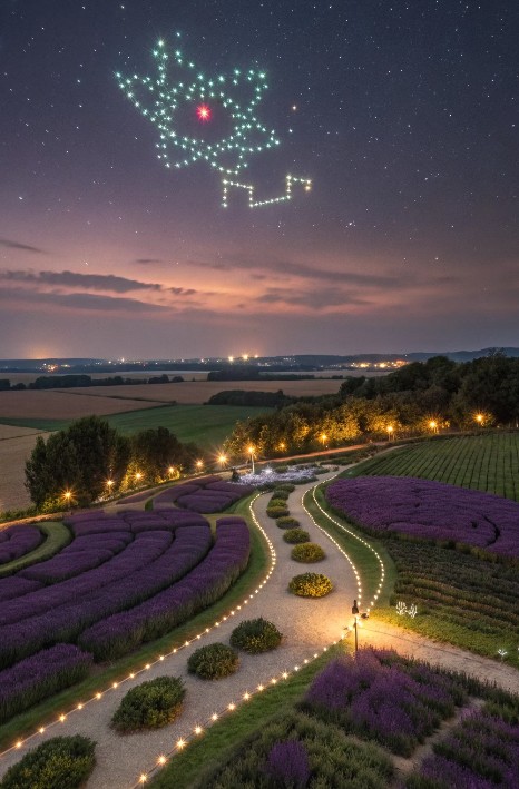 낮에는 푸른 자연 속 라벤더 정원을, 밤에는 화려한 조명과 드론쇼를 즐길 수 있어 하루 종일 머물러도 좋은 축제입니다. 저녁에는 음악과 함께 라이트 퍼포먼스가 더해져, 완전히 다른 분위기의 ‘야간 라벤더 정원’이 펼쳐집니다.