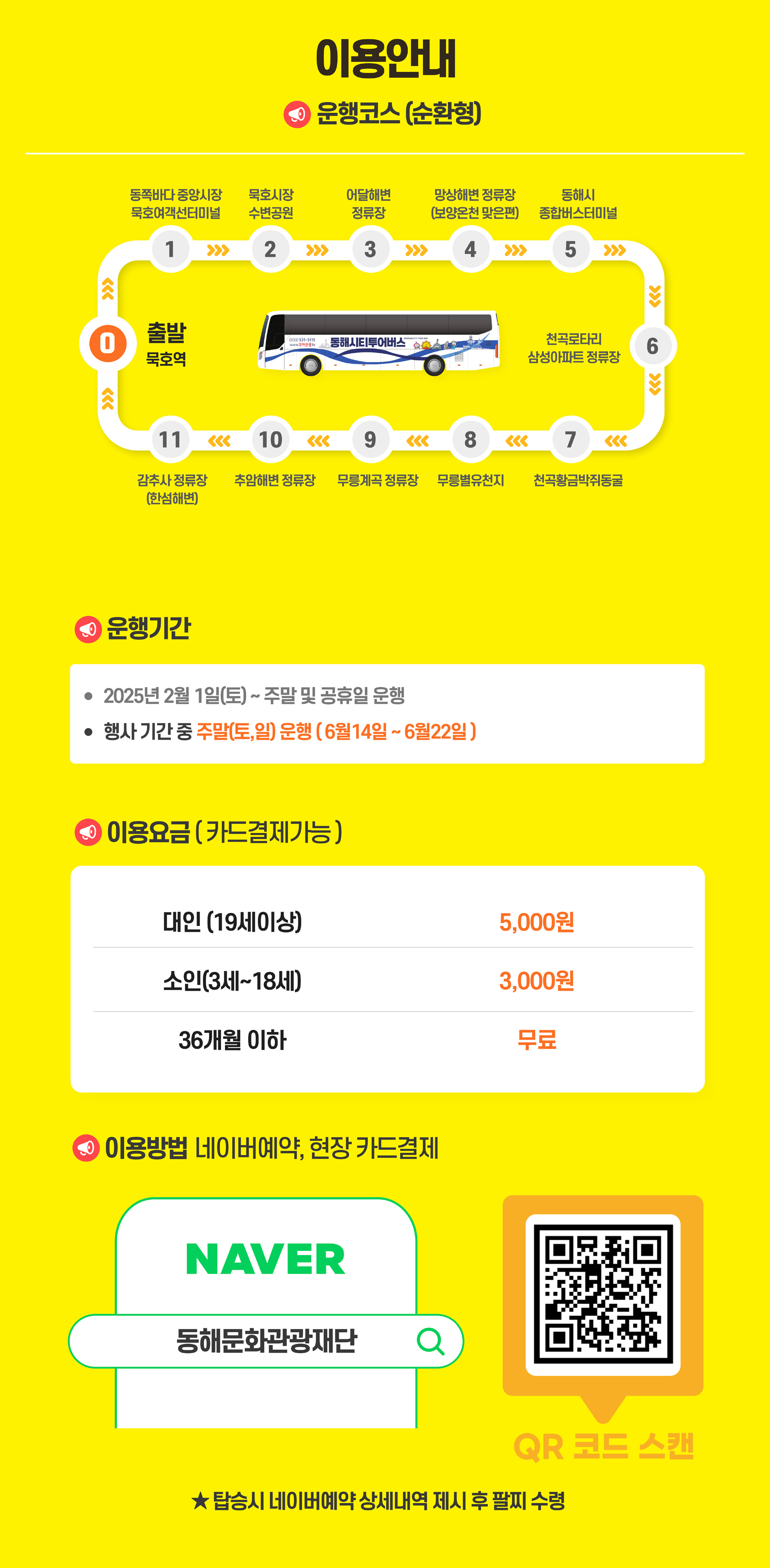 - 동해 시티투어버스: 주말 및 공휴일 운행, 관광지 연계 가능